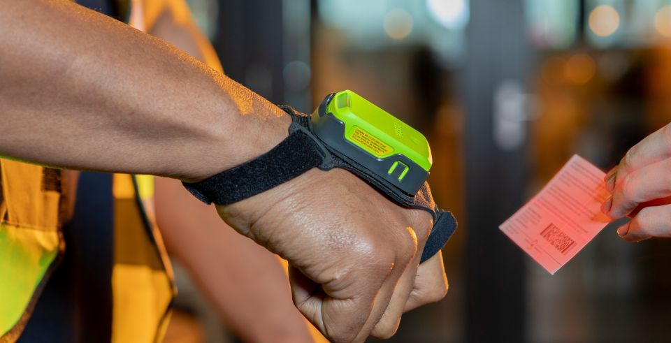 Mitarbeitern ist sofort klar, wie der RS2100 getragen wird. Die Halterung des RS2100 passt bequem für jede Handgröße, das Bestellen und Verwalten unterschiedlicher Größen entfällt. Sie wählen lediglich zwischen Ausführungen für die rechte oder die linke Hand. Und dank des integrierten Akkus erübrigt sich auch die Verwaltung separater Akkus.