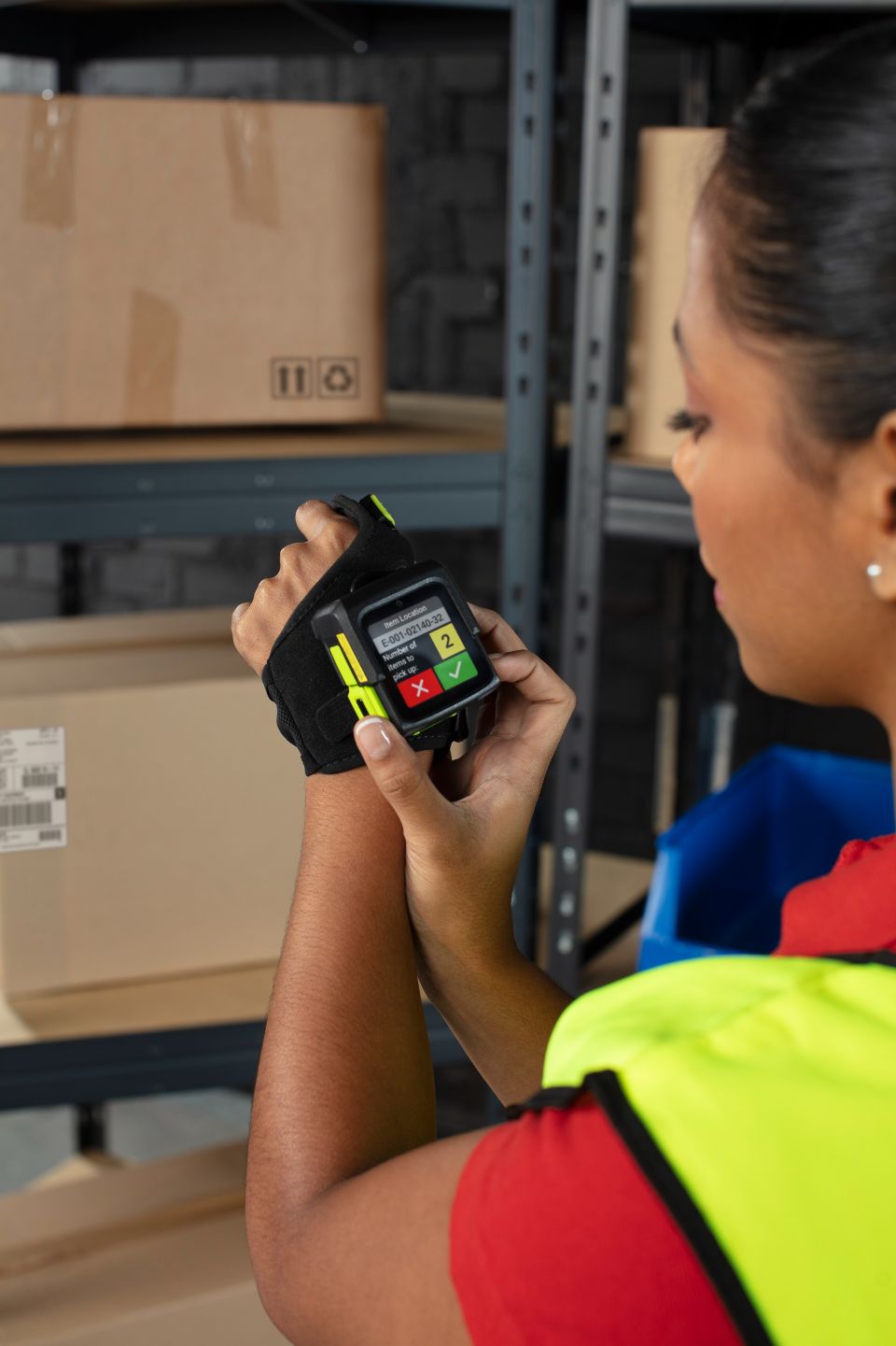 Der WS501 kann flexibel am Handrücken oder an zwei Fingern getragen werden. Diese modulare Bauweise sorgt für optimale Ergonomie und Bewegungsfreiheit, während alle wichtigen Funktionen jederzeit griffbereit sind. Besonders in der Kommissionierung und Fertigung steigert diese Flexibilität die Produktivität und reduziert Ermüdung bei langen Arbeitsschichten.