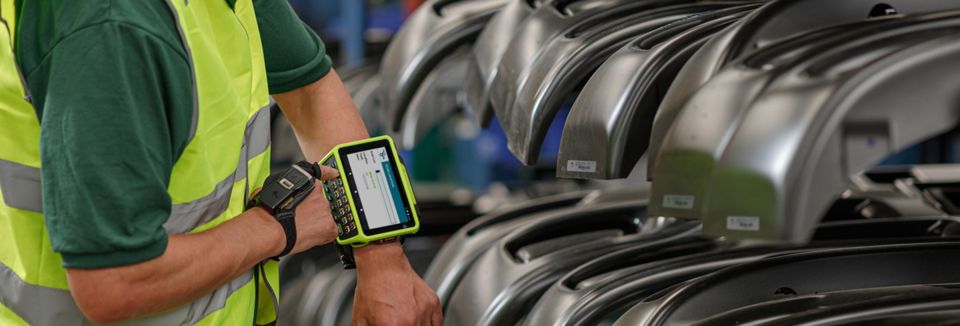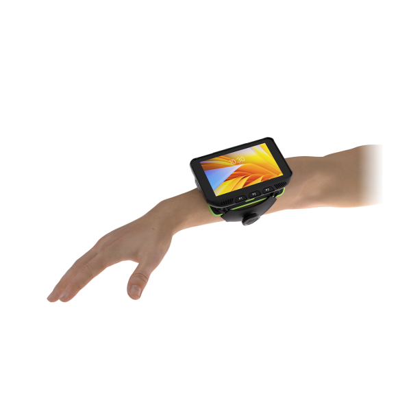 Der WT5400 wurde von Grund auf als Wearable-Computer konzipiert und bietet ein besonders flaches Profil von nur 12,7 mm. Dadurch lässt sich das Gerät bequem am Handgelenk tragen, ohne bei Bewegungen zu stören – selbst in engen Regalgängen. Mit einem Gewicht von nur 245 g inklusive Akku ist der WT5400 kaum spürbar und reduziert die Ermüdung bei langen Schichten. Die vielseitigen Armbänder – von Klettverschluss bis Dual-Dial-System – sorgen für optimalen Halt und individuellen Tragekomfort. Das große 4,7″ Display zeigt alle relevanten Informationen auf einen Blick, sodass weniger durch Menüs geblättert werden muss und die Produktivität steigt.