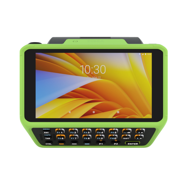 Im Inneren arbeitet ein Qualcomm® Octa-Core-Prozessor mit 2,4 GHz, unterstützt von 6 GB RAM und 64 GB Flash. Der WT6400 läuft auf Android 13 und ist upgradefähig bis Android 17. WLAN 6E mit Triband-Unterstützung sorgt für schnelle und stabile Verbindungen, Bluetooth 5.3 ermöglicht die Kopplung mit Scannern und Headsets. Die NFC-Funktion ist direkt im Gerät integriert und erleichtert die Verbindung mit Zebra-Peripherie durch einfaches Antippen. Zwei robuste USB-Anschlüsse und Pogo-Ladepads runden die Konnektivität ab.
